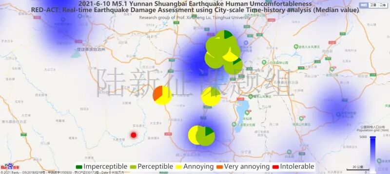 图5 20210610云南楚雄州双柏县5.1级地震不同台站地震记录人员加速度感受分布图