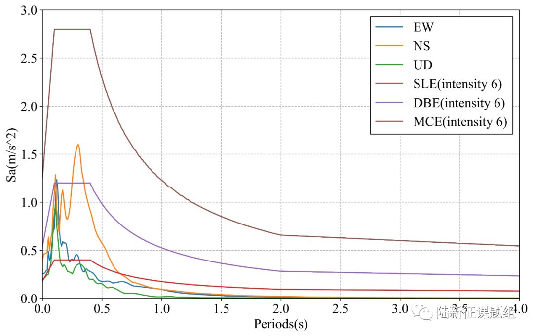 9 ground motions near to epicenter of this earthquake were analyzed. The names and locations of the stations can be found Table 1. The maximal recorded peak ground acceleration (PGA) is 46 cm/s/s. The corresponding response spectra in comparison with the design spectra specified in the Chinese Code for Seismic Design of Buildings are shown in Figure 1.