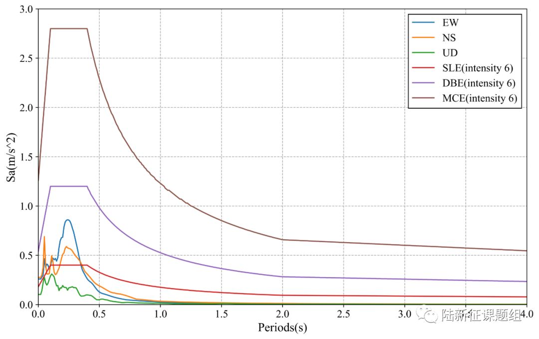 7 ground motions near to epicenter of this earthquake were analyzed. The names and locations of the stations can be found Table 1. The maximal recorded peak ground acceleration (PGA) is 28 cm/s/s. The corresponding response spectra in comparison with the design spectra specified in the Chinese Code for Seismic Design of Buildings are shown in Figure 1.