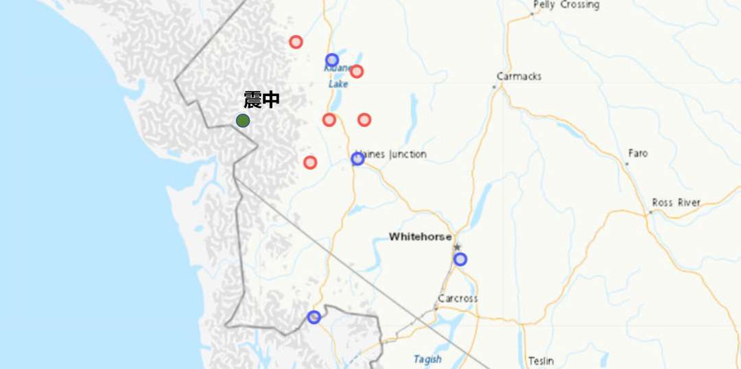 由于部分加拿大台站失联(图1中红色),20231207美国阿拉斯加州6.9级地震获得了4组地震动,即图1中蓝色。