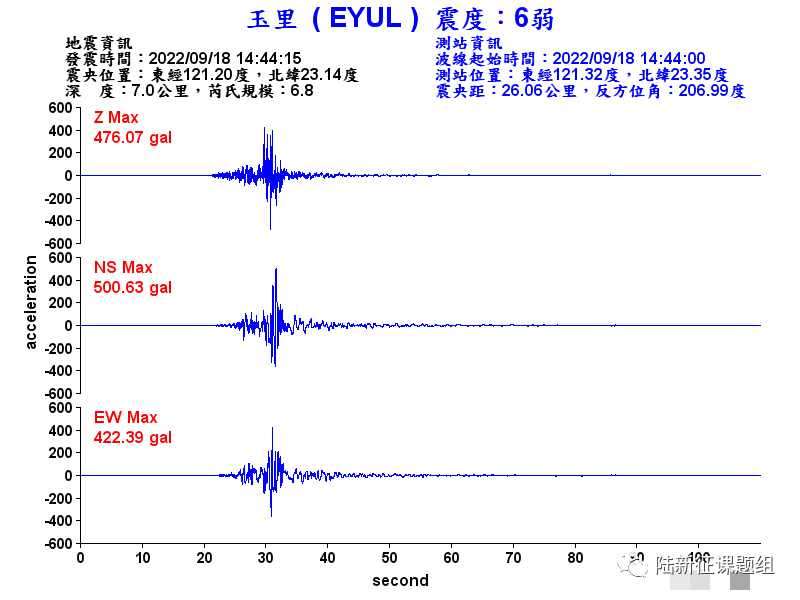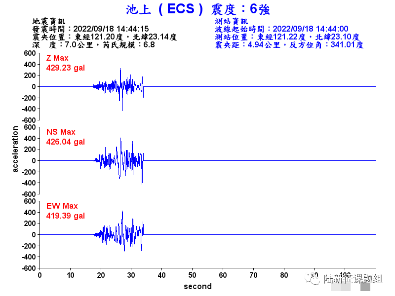 据中国地震台网正式测定,9月18日14时44分在台湾花莲县发生6.9级地震,震源深度10千米,震中位于北纬23.15度,东经121.30度。