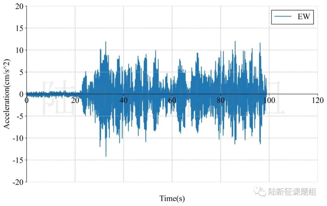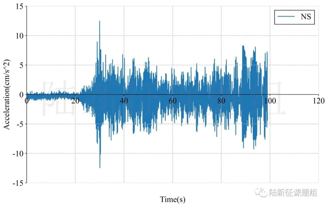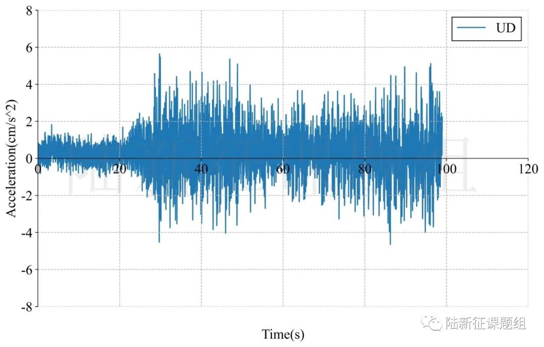 当地气象局获得的近场地震动如图1所示,记录到水平向地震动峰值加速度为501cm/s/s,竖直向地震动峰值加速度为476cm/s/s。由于没有更具体的数据,所以不能进一步分析。