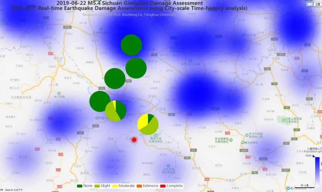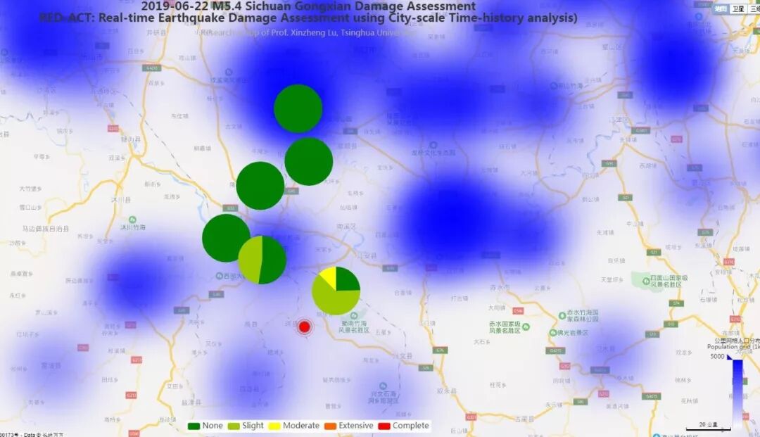 图4(c) 20190622四川省宜宾市珙县5.4级地震不同台站地震记录破坏力分布图