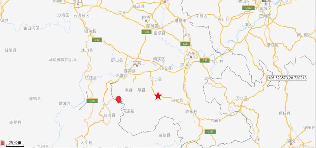 据中国地震台网正式测定,6月17日22时55分在四川宜宾市长宁县发生6.0级左右地震,震源深度16千米。震中位于北纬28.34度,东经104.90度。