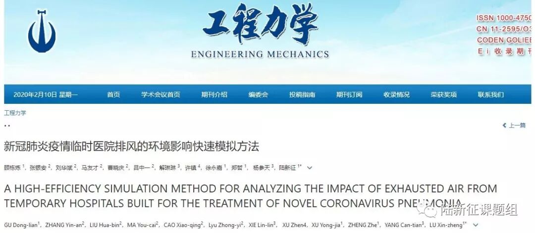 链接:《工程力学》研究快报:新冠肺炎疫情临时医院排风的环境影响快速模拟方法