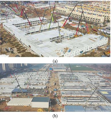 图1 建设中的(a)火神山(b)雷神山临时医院[33]