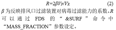 根据FDS提供的功能,“&SURF”命令可以设定排气口的排气量(采用“VOLUME_FLOW”参数,单位m3/s),这个数据可以根据排风口联通的空调系统的设计通风量确定。本次肺炎疫情临时医院每个病房的设计排风量VR大概是600-750 m3/h。一般N个病房共用一个排风口,则可以计算得到排风口的排风量为VR∙N。