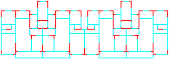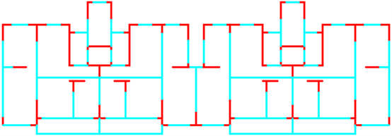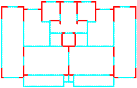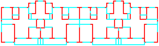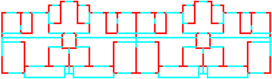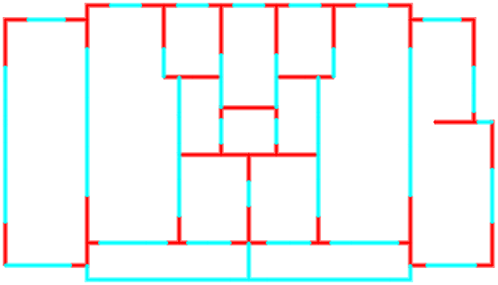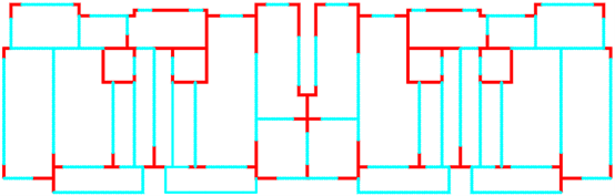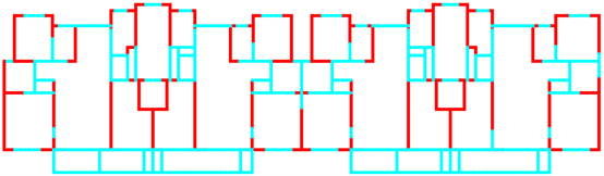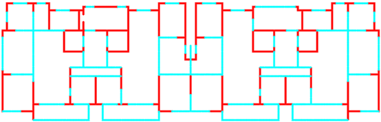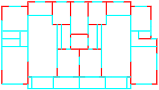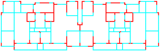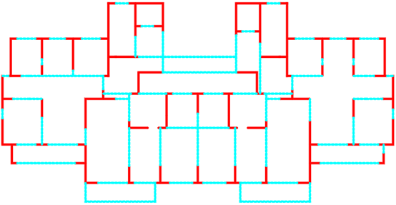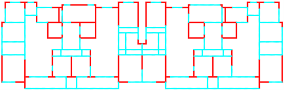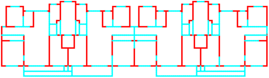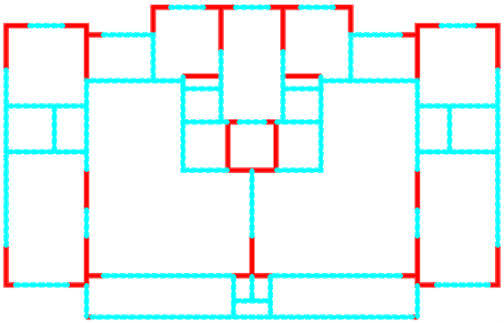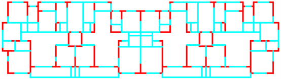 采用ai-structure QQ群(群号:741840451)共享资料文件中“4.examples-10个典型案例数据-20230216”的案例进行展示。图中,红色线段为剪力墙,蓝色线段为梁。