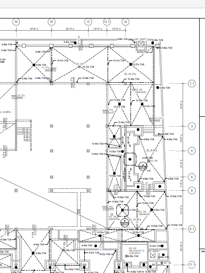 为了满足车道等,结构在首层及二层进行了转换,右侧倒塌部分对应的转换如下图所示,从国内规范角度讲,这种转换需要采取更进一步措施,包括转换柱部位双向拉结等。