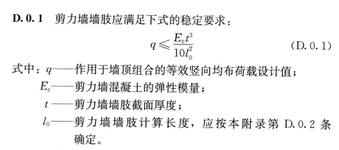 欧拉公式成为了很多稳定计算公式的基础,比如我国的《高层建筑混凝土结构技术规程JGJ 3-2010》(以下简称《高规》),就给出了剪力墙结构稳定荷载的计算公式: