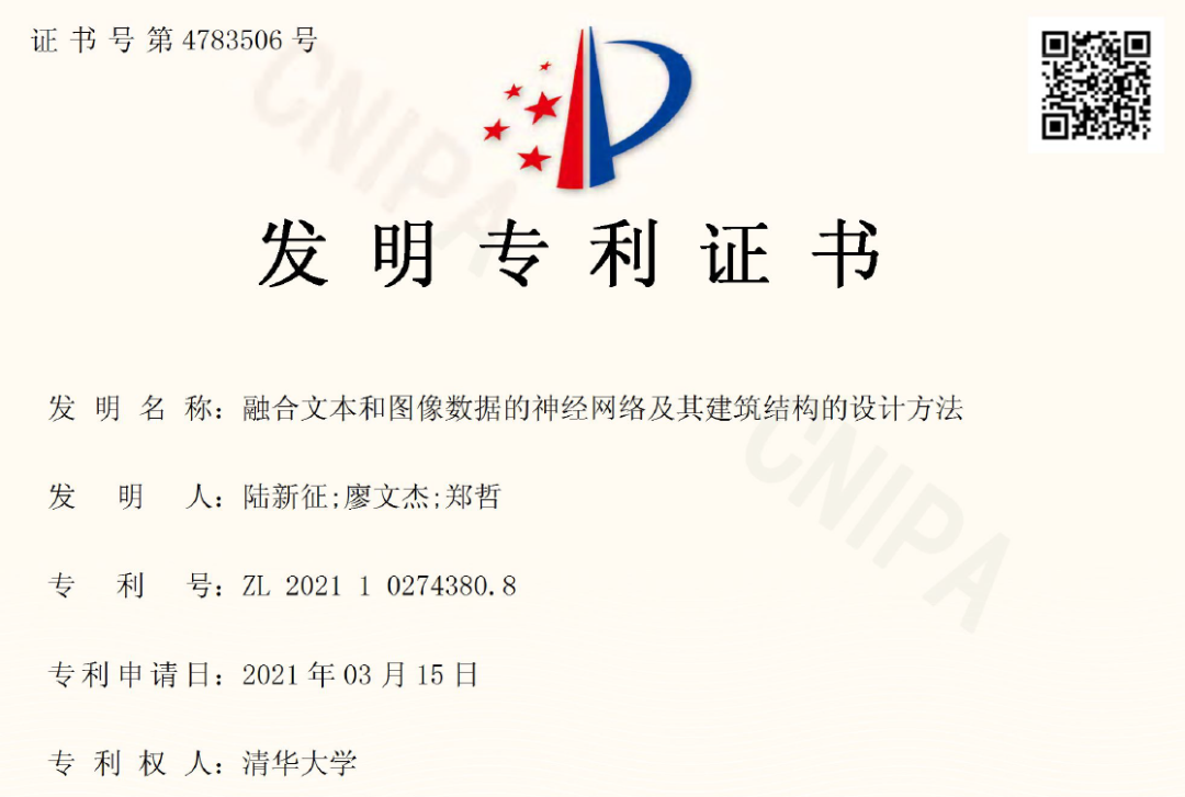 发明专利:融合文本和图像数据的神经网络及其建筑结构的设计方法. ZL 202110274380.8.