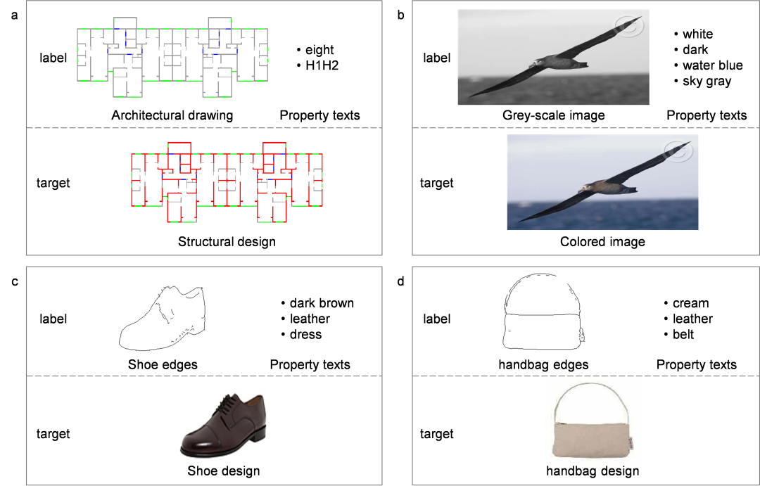 本研究在StructGAN公开的建筑-结构设计数据集基础上增加了设计条件的标签,同时也基于其他图像数据集构建了带有文本标签的数据集,用来测试本方法的泛化性和有效性(图4)。