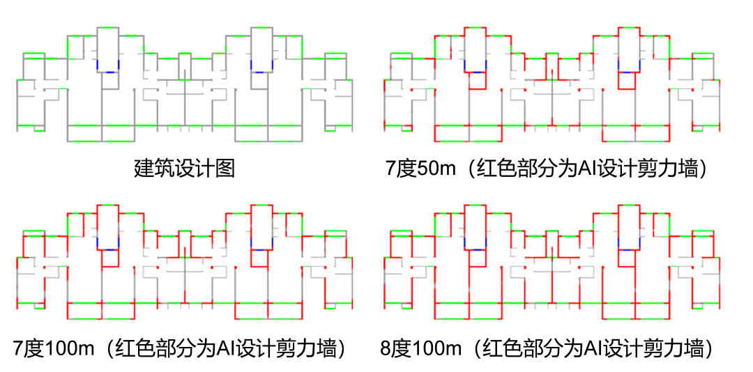 采用txtimg2img模型,输入不同的文本条件,便可生成具备不同特征的剪力墙结构设计,如图8所示。