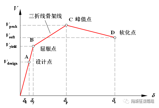 于是设防砌体的骨架线的确定便依赖于以下6个参数:用于计算周期的a和b,以及通过试验回归确定的屈服超强系数、峰值超强系数、峰值位移角以及软化点位移角。