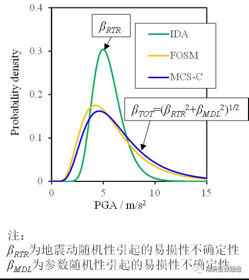 下面这张图是这个工况下的结构易损性概率密度曲线,可以发现,在单体分析时,参数引起的结构易损性不确定性不可忽略。