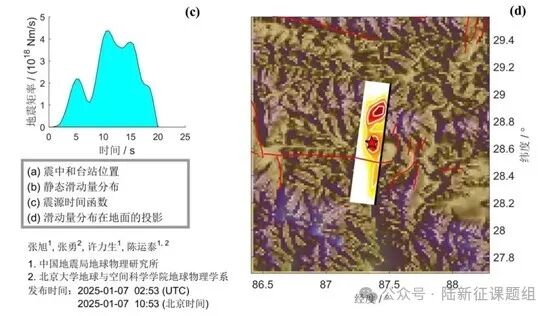 图2 张勇教授等发布的震源破裂过程(2025年1月7日西藏定日6.8级地震的震源特征)