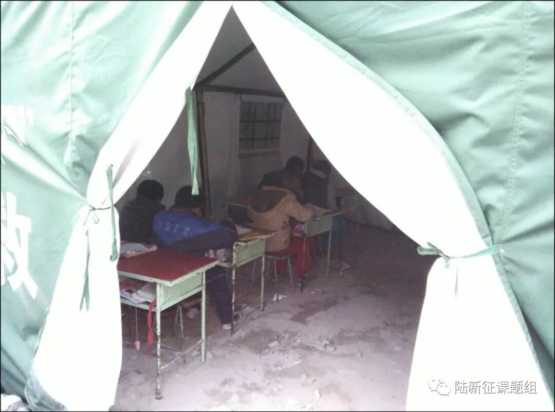 图11 在国家的帮助下,当地对教育也很重视。震后天刚亮孩子们就在帐篷学校里面上课了。专家对教学楼安全检查后,孩子们就可以回到教学楼去学习了。