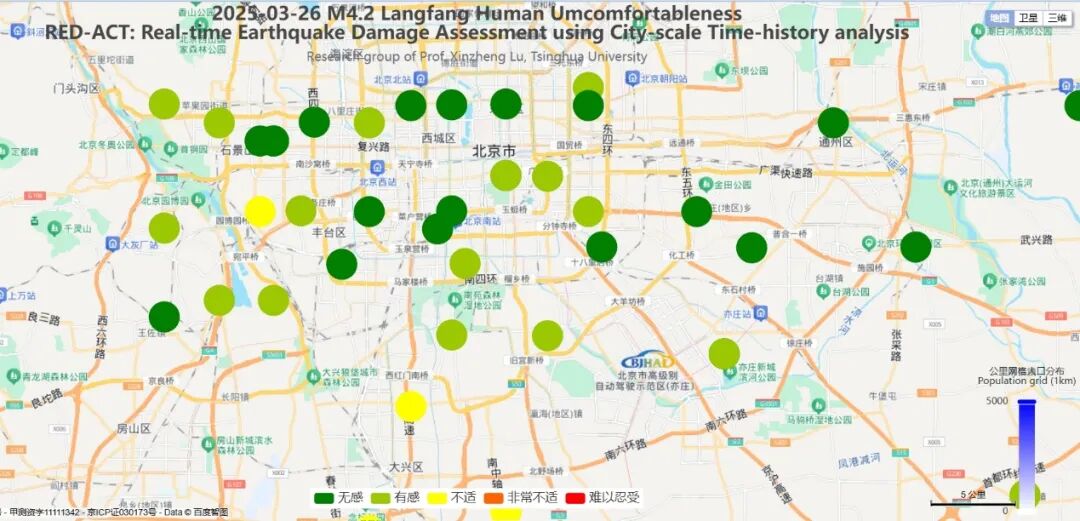 图3 根据RED-ACT的城市抗震弹塑性分析得到的北京地区人员感受分布