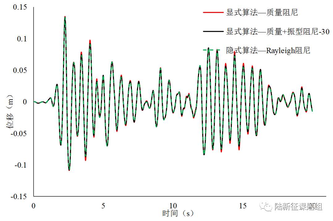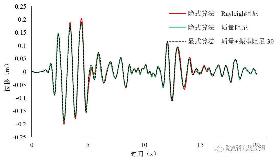 因此,本研究基于蛙跳法和中心差分法,建立了一种显式积分算法格式,并集成于OpenSees中。其后根据其稳定性条件,在OpenSees中集成了配合显式算法的振型阻尼模型。