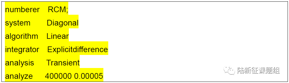 其中,由于显式算法无需迭代求解,应将algorithm设置为Linear。此外,由于显式算法在求解时,方程的系数矩阵为质量矩阵,是一个对角矩阵,故应将system设置为Diagonal,此时算法效率最高。如果将system设置为其他选项,尽管方程解耦,但程序仍将按照常规线性方程组求解流程进行求解,可能会导致计算效率下降。