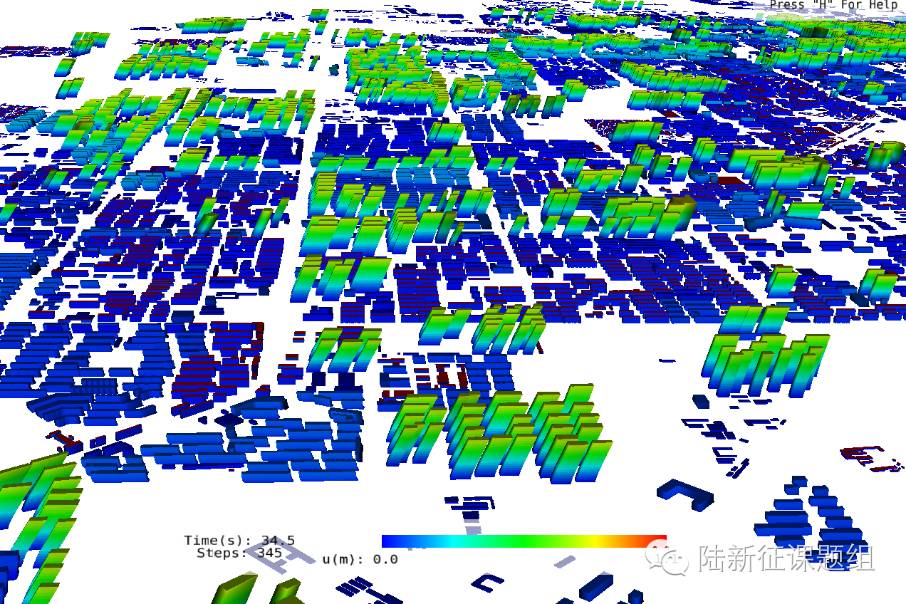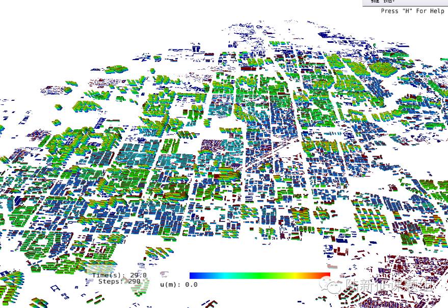 当然,从区域震害模拟的角度上说,最合适的情况,应该是类似鲁甸地震龙头山镇震害模拟那样输入真实的地震动记录(见以往的分析案例:龙头山镇模拟),或者类似CBD震害模拟那样输入根据震源和传播机制生成的宽频带地震动时程输入(见以往的分析案例:CBD模拟)。在本次分析中,由于未得到类似的地震动输入,所以采用了一些比较近似的方法。如果可以得到更加真实的唐山地震动模拟数据,则可以进一步提高震害模拟的可靠性。