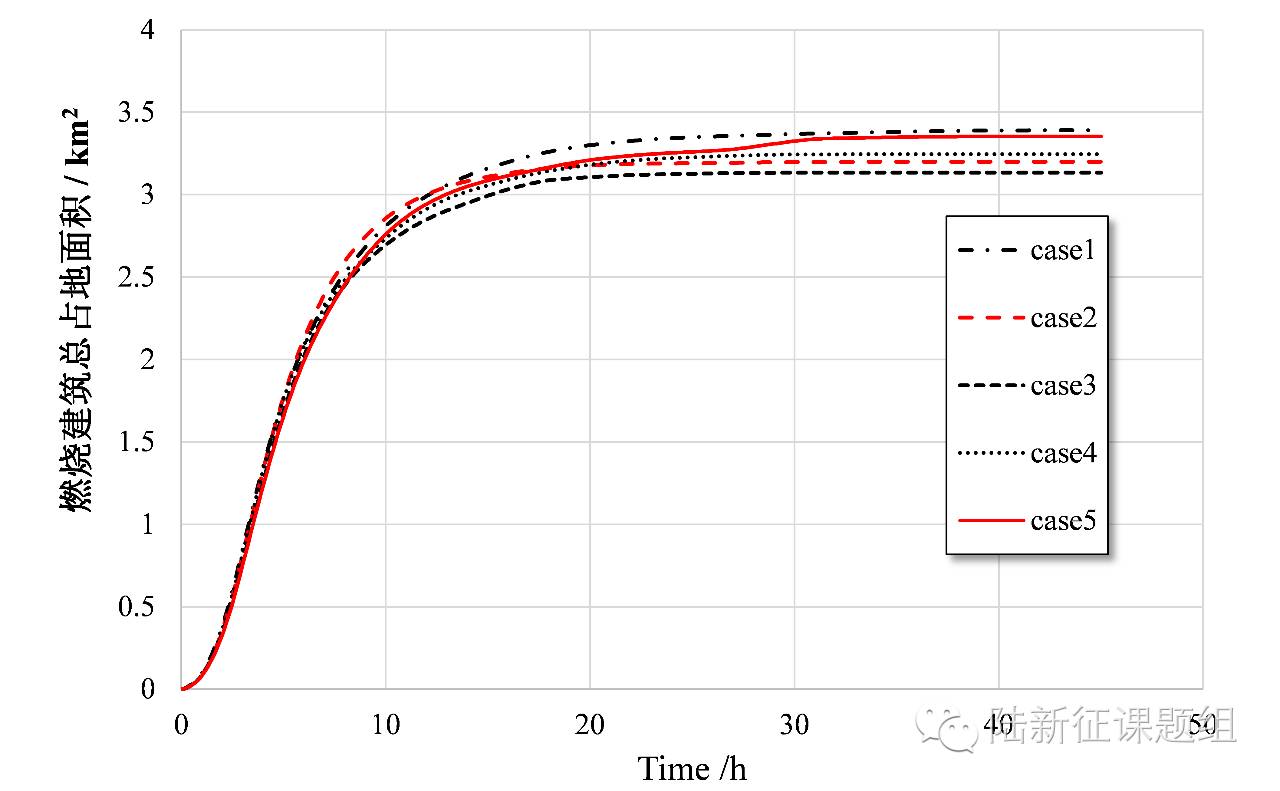 图2.4 起火建筑占地面积随时间的变化曲线