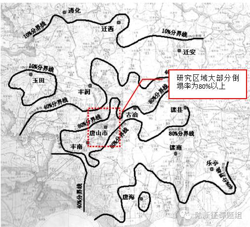 图2.6 唐山地震灾区房屋建筑倒塌分布图(来源:苏幼坡等)