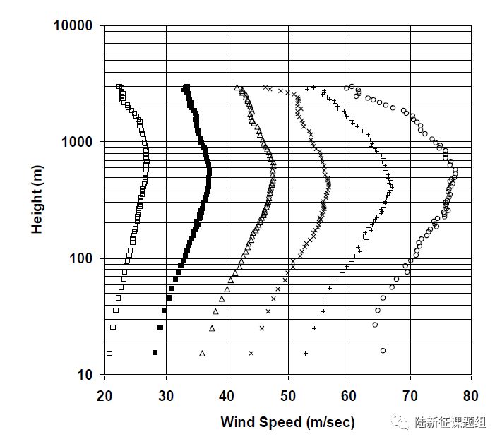 图3 Hazus中最大风速半径附近平均风速与高度关系