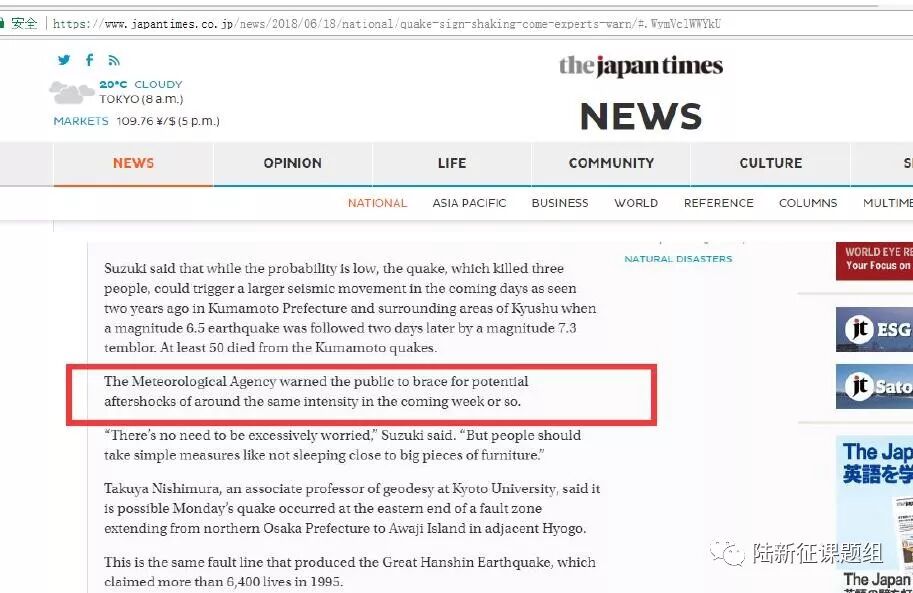 06-18大阪地震已经过去3天了,但是大阪的民众却轻松不起来,因为日本气象厅发布通告,说未来一周可能还会有同等规模的余震。确实,几乎每次大地震后,接着还会有多次余震,有些余震的震级还相当大,例如汶川地震后,就发生过6级以上余震8次,最大的青川6.4级余震又造成8人死亡,927人受伤。