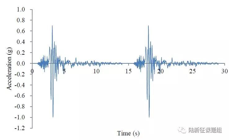 而城市抗震弹塑性分析为克服上述问题提供了一个非常好的解决办法。与传统方法不同,城市抗震弹塑性分析方法,不是基于经验的预测方法,而是基于物理模型(Physics-based)的方法。城市抗震弹塑性分析基于结构动力学基本原理,每一个震害预测结果,都是根据结构动力学响应真正“算”出来的。所以,只要能够构造出合适的余震输入,城市抗震弹塑性分析方法就可以算出来余震的震害预测结果。比如,如果未来灾区再次遭遇到和06-18大阪6.1级地震一样大的地震作用,我们就可以构造如图1所示的地震输入,将其输入到城市抗震弹塑性分析的各个建筑模型里面去,就可以得到考虑主震累积损伤后的主震-余震结构响应曲线(图2),进而可以据此进行余震震损预测。