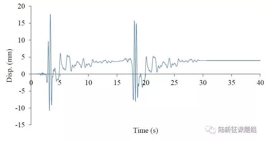 图2 得到典型建筑在主震-余震下的楼层位移时程曲线