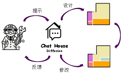 近年来,人工智能已经在平面图生成领域取得不少进展:生成对抗网络方法能自动生成房间布局;扩散模型则让布局生成更稳定、更自然;还有部分研究尝试引入交互功能,比如添加或删除房间。但现存方法仍然存在以下不足:(1)输入门槛高,通常需要用户先画好拓扑关系图,操作复杂;(2)交互能力弱,难以理解自然语言这种更直观的需求表达;(3)局部修改难,修改一个房间,往往会导致整体重新生成,难以保持一致性。针对这些问题,我们提出ChatHouseDiffusion以提高设计效率。
