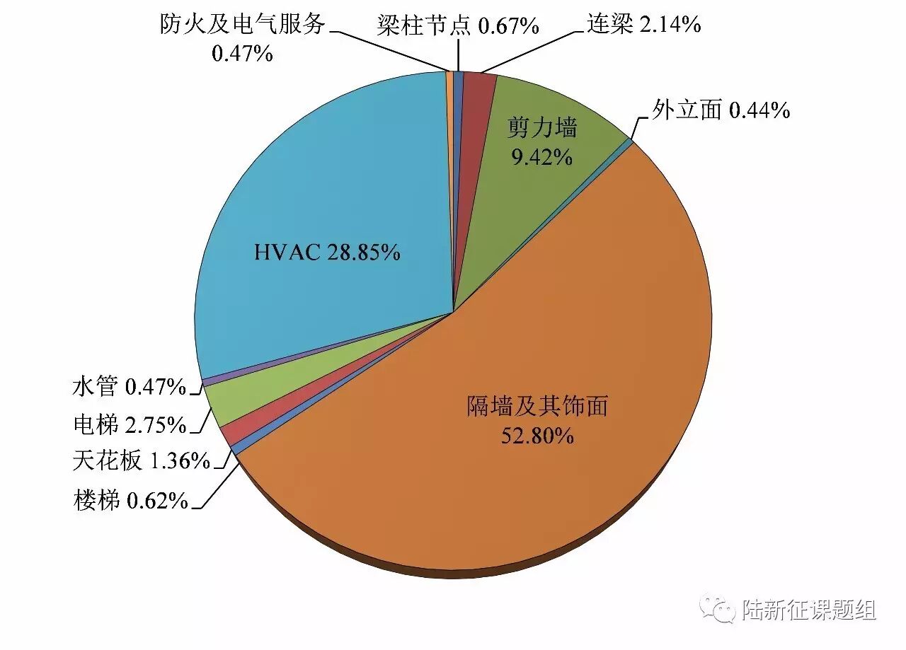 即便是中震后修复在经济上和技术上都是可行的,修复的时间仍然难以满足地震韧性城市的要求。仍以2.1节所述的43层的钢筋混凝土框架-核心筒高层住宅为例,在遭遇中震水平地震作用后,建筑修复工日(1个工人1个工作日的劳动量)达3000工日以上[2]。主要的修复工作内容包括隔墙及其饰面、空调、剪力墙等(图3)。如果安排30个工人参与修复作业,则总修复时间为3个月以上。在这期间,楼内居民被迫要异地安置。如果一个城市成千上万的建筑物里面的居民都要异地安置数个月,那么城市的功能势必会受到严重影响。