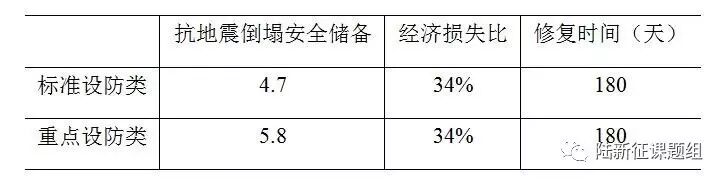 医院急诊部门、救灾指挥中心等应急部门应在地震后保持其功能。然而按照现行抗震规范实际上无法充分满足应急部门大震后的维持功能需求。我国现行抗震规范将救灾应急部门列入抗震设防的“重点设防类”,从工程设计上主要通过提高构造要求(主要是改善结构的变形能力),并适当提高地震作用来提升其抗震性能。然而,如前所述,这些仅考虑结构性能的改进措施虽然可以有效提高结构的抗震安全性,但却难以满足应急部门震后可用功能的需求。本文作者对一栋按照中国规范设计的8度区典型框架结构进行了分析。结果表明,虽然将其从“标准设防类”提升到“重点设防类”后,结构的抗地震倒塌安全储备(CMR)提升了15%,但是其遭遇罕遇地震后的经济损失比(34%)及修复时间(约180天)几乎没有变化(表1)。可见现阶段抗震工程技术措施尚不能满足应急部门震后可用功能需求。