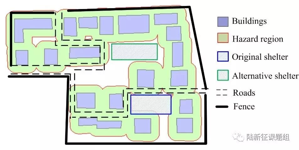 图4 坠物危害影响区域与紧急避难场所选址