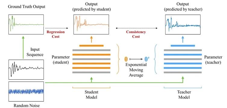 基于一致性的半监督学习方法Mean Teacher示意图