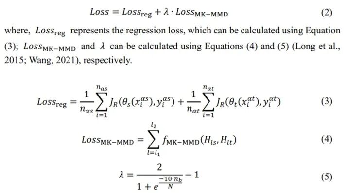 该网络的损失函数同样由源域、目标域的回归损失(MSE Loss)以及MK-MMD Loss三部分组成,并设置权重参数调节其比例关系,如下图所示(详见论文正文与代码说明):