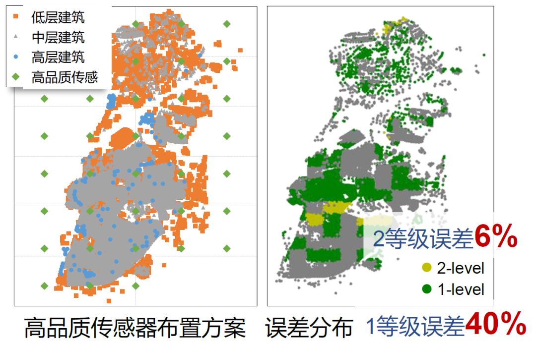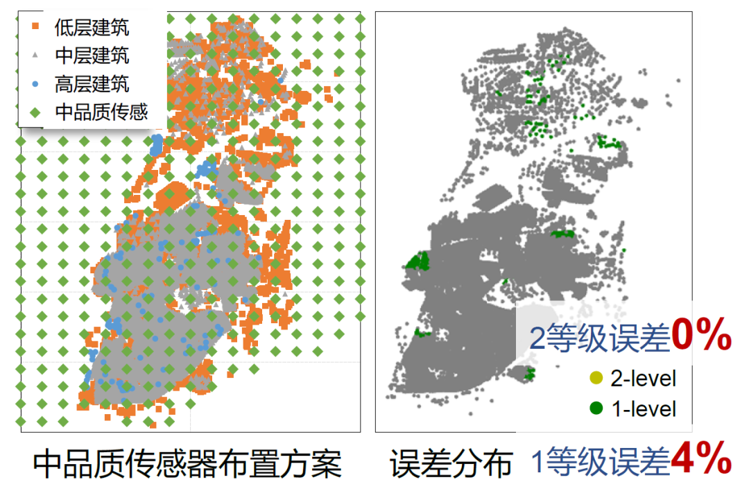 我们开展了一个初步的分析,首先排除低品质传感器(前面研究表明该传感器目前不适用于震害分析),假设高品质传感器的价格是中品质价格的9倍,则对应高品质传感器数量是中品质的1/9,传感器则采用最简单的均布布置方法。