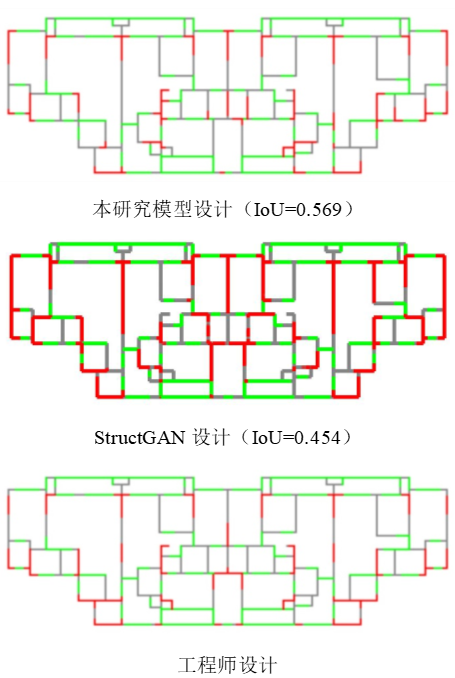 图9 典型案例的设计结果和与工程师设计的交并比