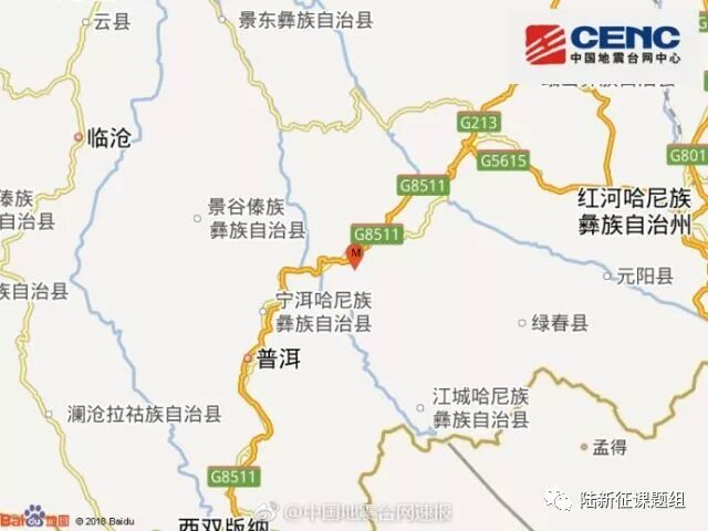 根据中国地震台网测定,北京时间2018年9月8日10时31分,云南普洱市墨江县发生5.9级地震,震中位于北纬23.28°,东经101.53°,震源深度11千米。