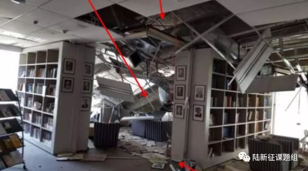 在地震发生后,一方面因为电路短路、炉具倾覆、煤气和燃料泄漏等,发生次生火灾的风险会显著增加。另一方面,喷淋系统在地震下可能会发生严重的破坏(图2),灭火能力可能会显著下降。这显然就属于关键时候“掉链子”的事情了。