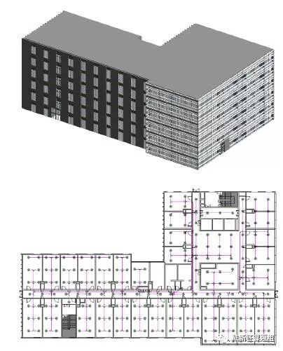 图7 案例建筑及其喷淋系统的BIM模型