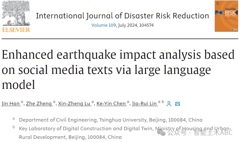 论文:Enhanced Earthquake Impact Analysis based on Social Media Texts via Large Language Model. International Journal of Disaster Risk Reduction, 2024, 109, 104574.