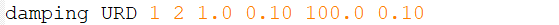 关键词:damping URD(通用频变阻尼);编号1;共两个点:当频率为1Hz时,阻尼为0.05(=0.10/2);当频率为100Hz时,阻尼还是0.05(=0.10/2)。