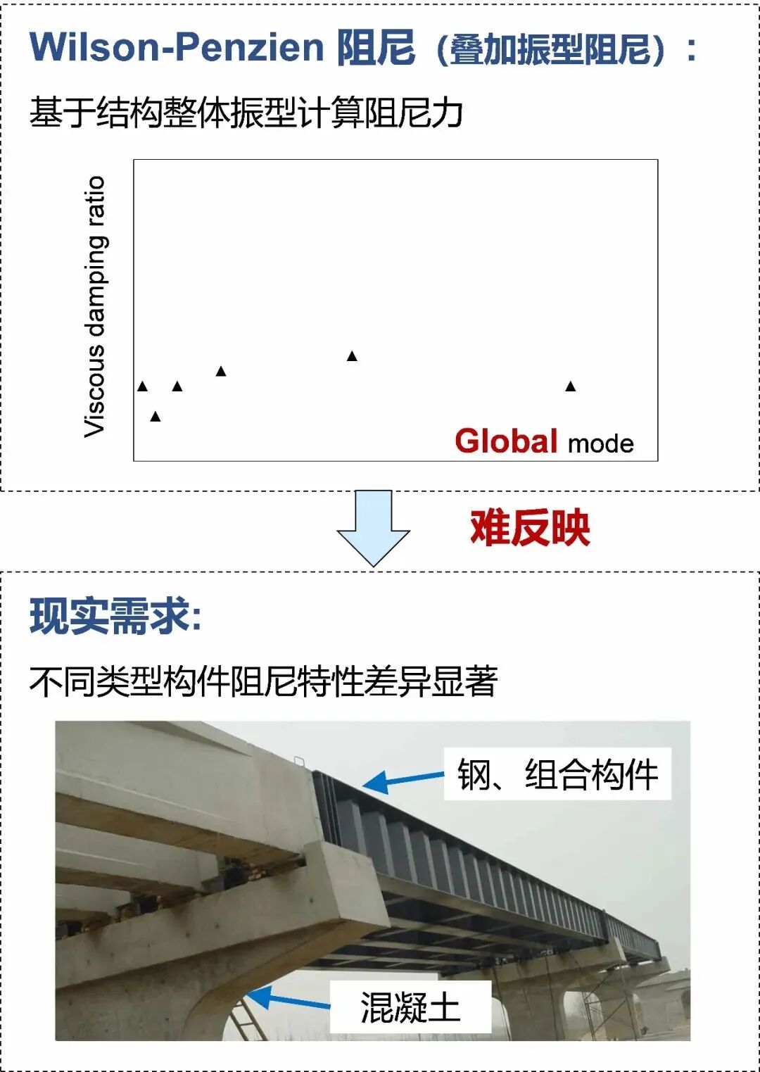 问题4. 振型阻尼模型不易考虑不同构件的阻尼差异