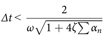 上述形式用于蛙跳法时,其显式计算的稳定步长为: