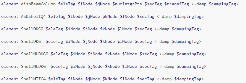 使用时,只需在对应的单元后面加上 “-damp $dampingTag” :