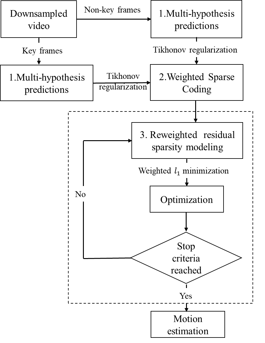 接下来是时间域上的稀疏优化,主要通过利用重加权残差稀疏性建模来增强关键帧与非关键帧之间的时间相关性。最后才是基于相位的运动估计。