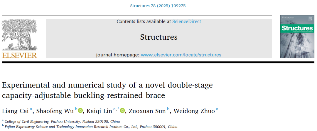 [2] Experimental and numerical study of a novel double-stage capacity-adjustable buckling-restrained brace