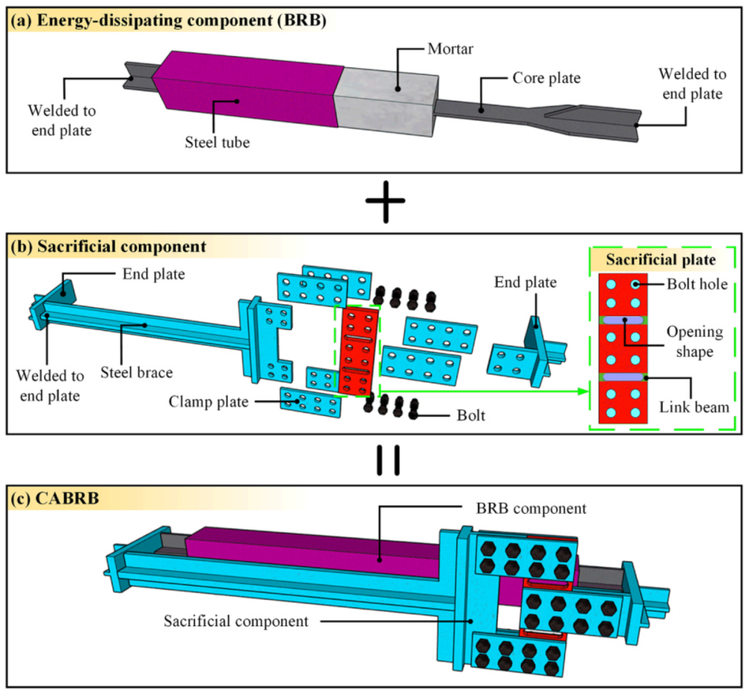 (3)牺牲板在调控CABRB性能中起关键作用,合理参数设计可实现其力学行为的精准调控;地震损伤后通过更换牺牲板可实现支撑性能的快速恢复。